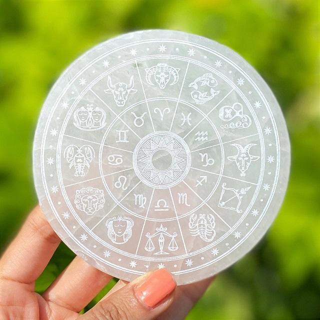 ล้อโซไดโซไดไนต์ธรรมชาติ Selenite,แผ่นทำความสะอาด Horoscape Selenite และคริสตัลกริดหินรักษาซื้อออนไลน์
