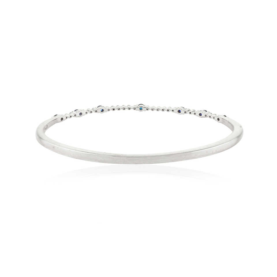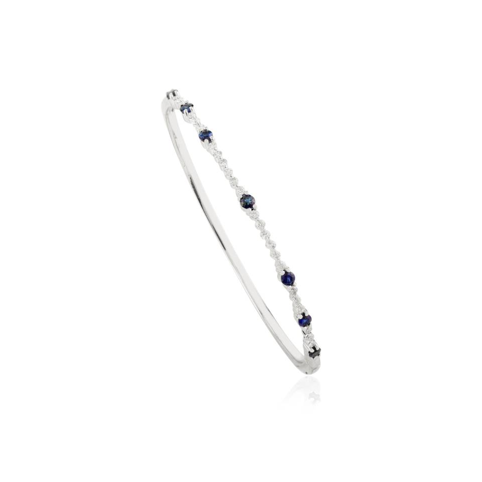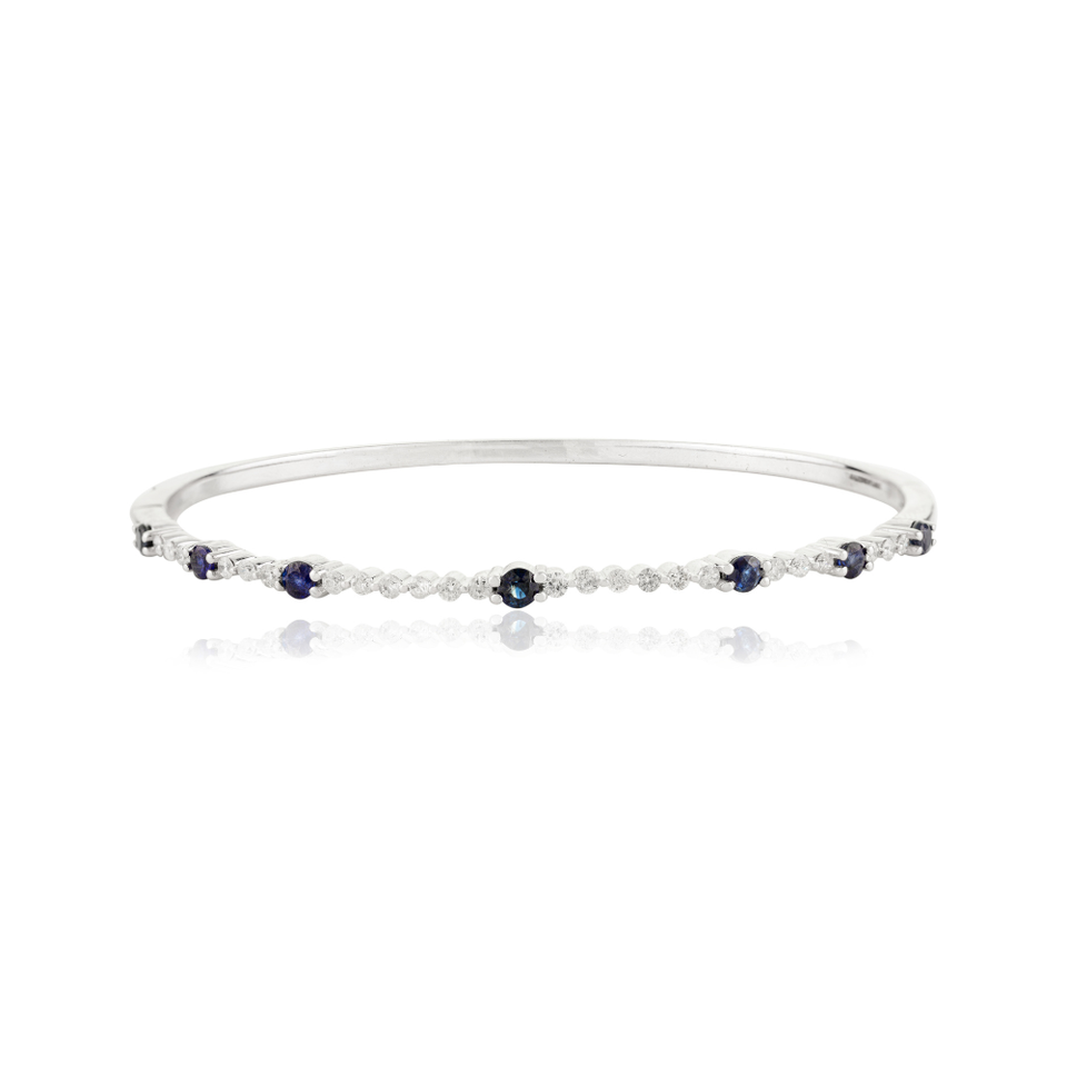 เครื่องประดับหินวันเกิด September ธรรมชาติไพลินและเพชรสีทองขาว14K สร้อยข้อมือเทนนิสของขวัญแต่งงาน
