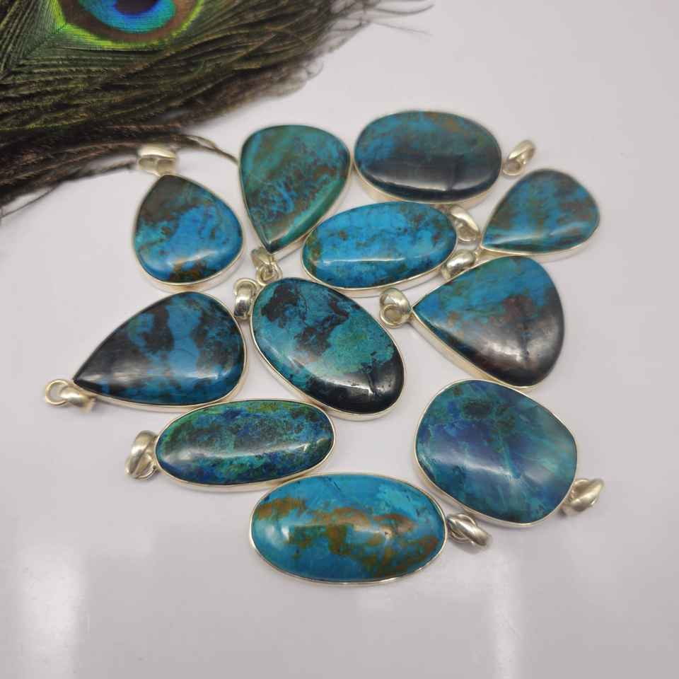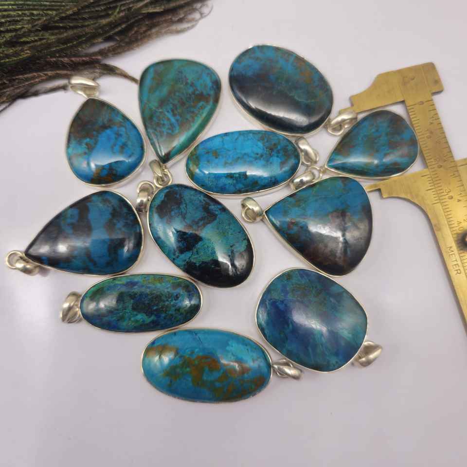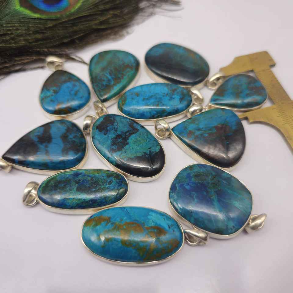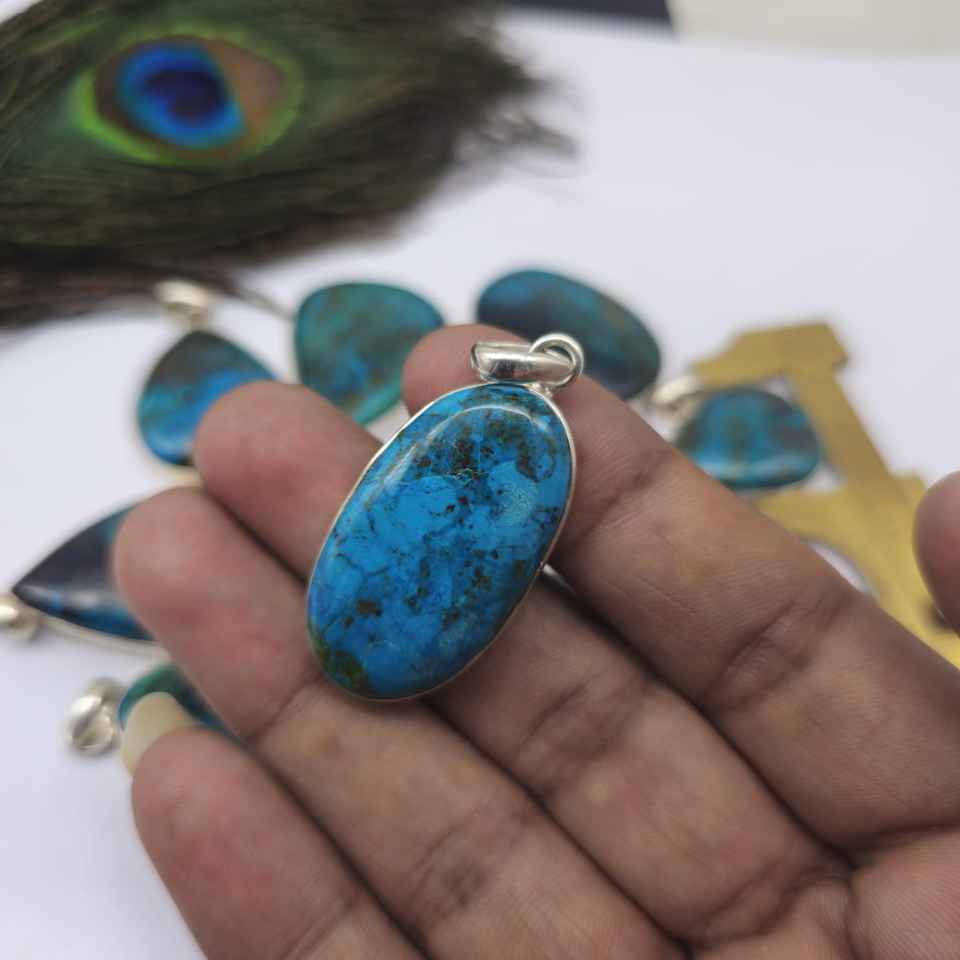 ธรรมชาติShattuckite Cabs Azurite Shattukiteจี้เงินShattukite AzuriteอัญมณีSmooth Polishสําหรับสร้อยคอเครื่องประดับทํา