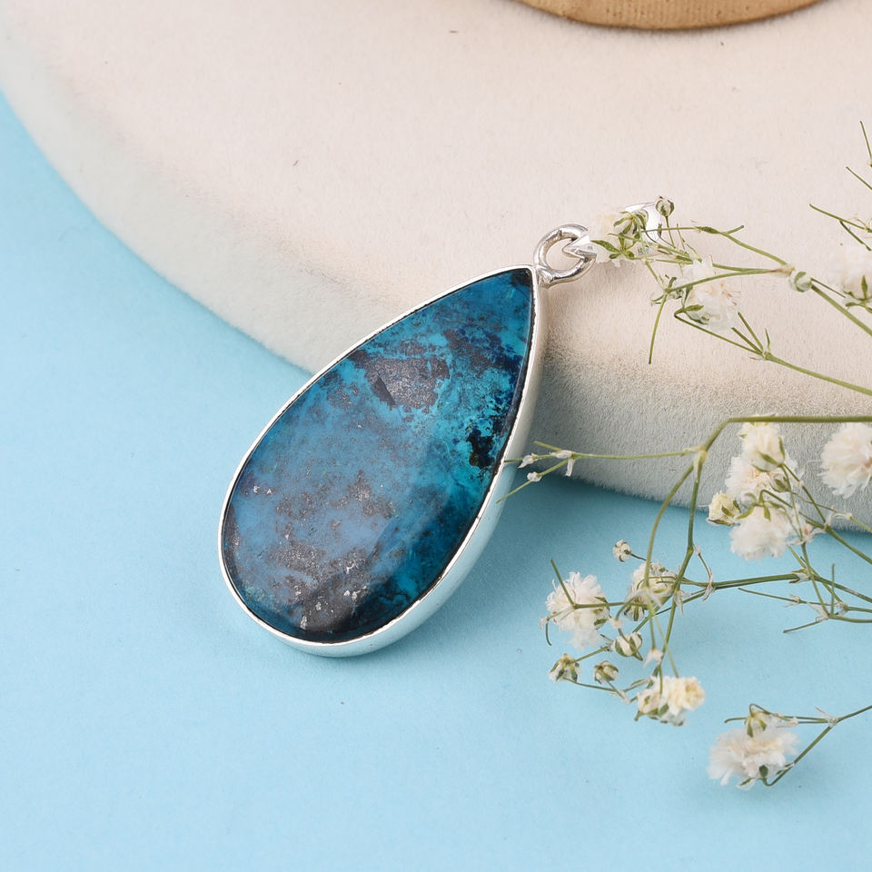 Shattuckite ธรรมชาติรูปทรงลูกแพร์อัญมณี925จี้เงินชุบเงินจี้แฟชั่นสำหรับงานแต่งงานของขวัญหรืองานเลี้ยง