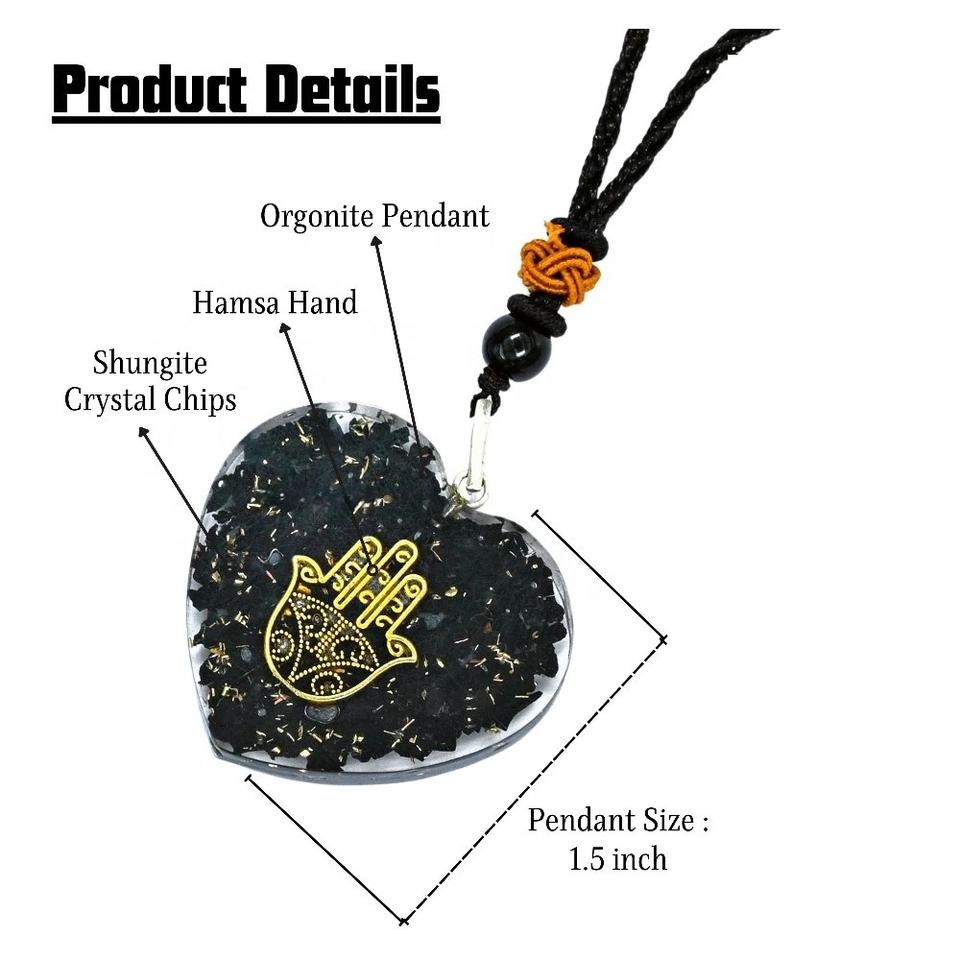 Product name:SHUNGITE CHIPS ORGONE PENDANT WITH HAMSHA LOGO