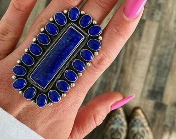 Lapis Lazuli หินอัญมณีธรรมชาติทำด้วยมือแหวนเครื่องประดับ