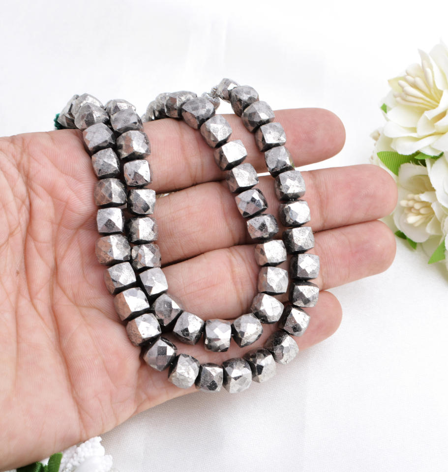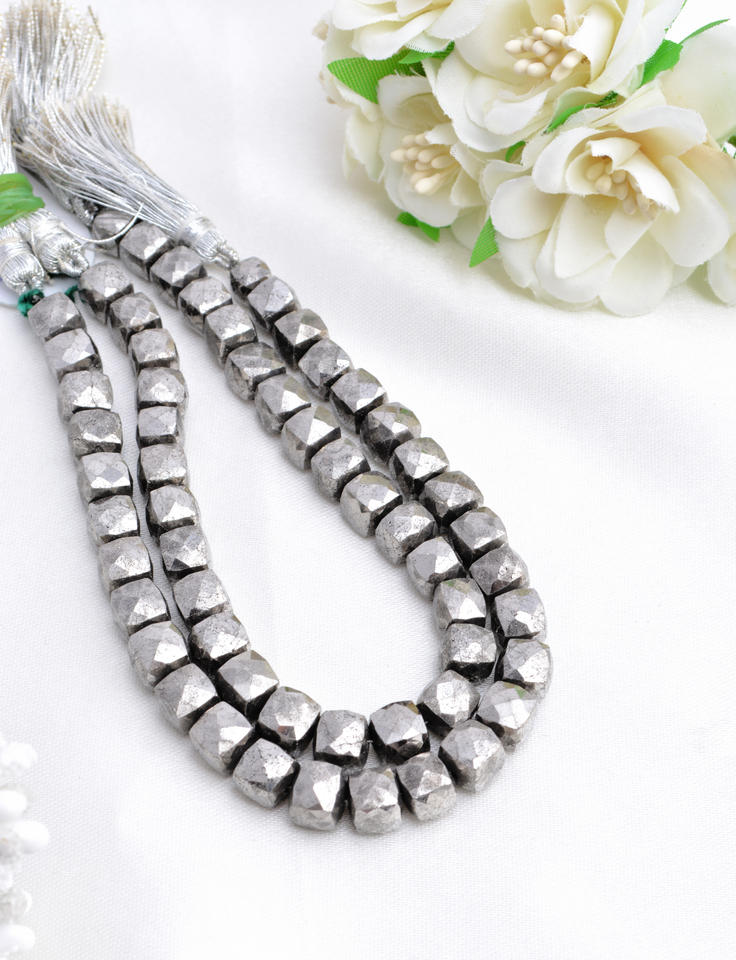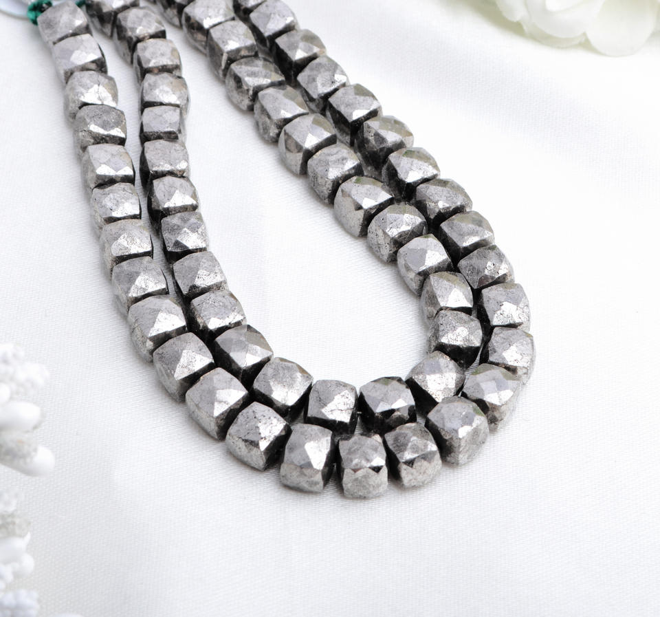 ลูกปัดพลอยไพไรต์เงินธรรมชาติทรงกล่องเจียระไนแบบอินเดีย สำหรับทำเครื่องประดับชั้นดี