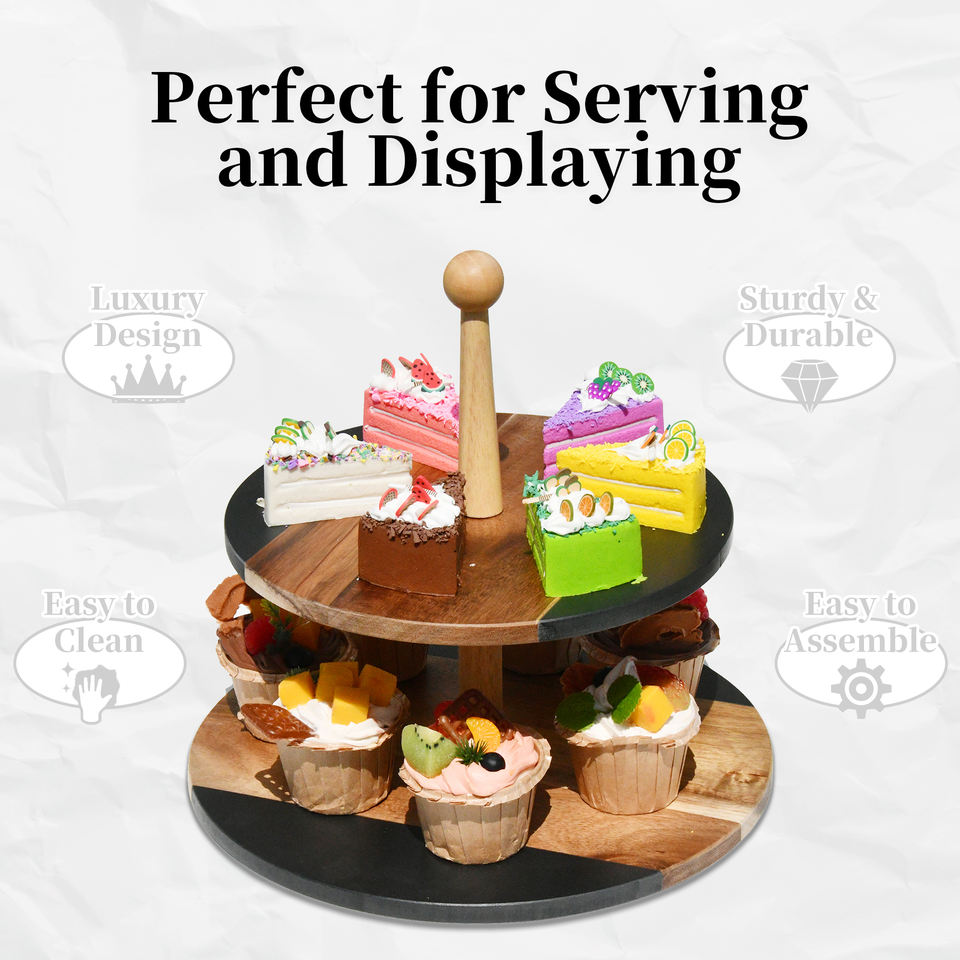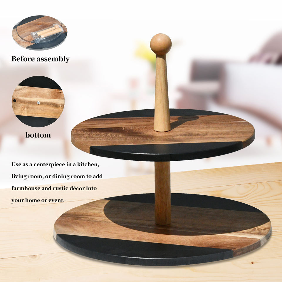 ชื่อ:ถาดเสิร์ฟไม้2ชั้นทันสมัยแบบเดี่ยวธรรมชาติ