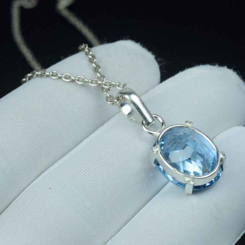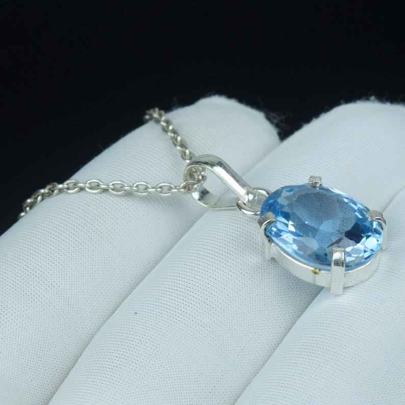 Natural Sky Blue Aquamarine Pendant 925 Sterling Silver Oval Cut Gorgeous Gemstone Necklace Jewelry