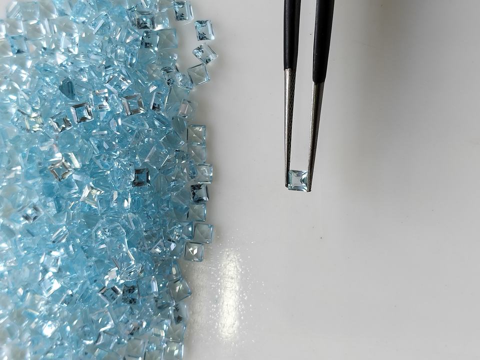 พลอยโทแพซสีฟ้าท้องฟ้าธรรมชาติทรงสี่เหลี่ยมตัดเป็นชิ้นสี่เหลี่ยม3มม. สำหรับทำเครื่องประดับอัญมณีภูเขาสีแดงขายส่ง