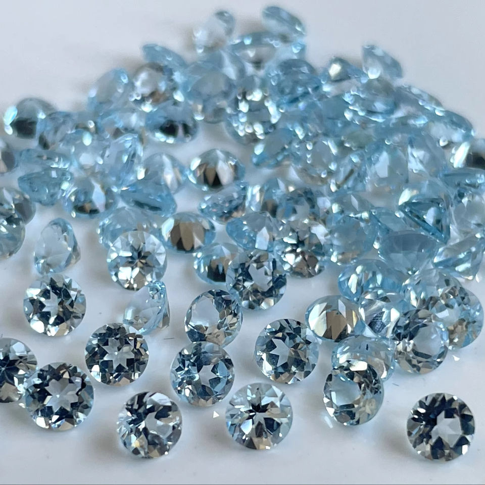 ท้องฟ้าสีฟ้าบุษราคัมธรรมชาติตัดรอบ1.5มมเหลี่ยมเพชรพลอย-หลวมท้องฟ้าสีฟ้าบุษราคัมรอบ