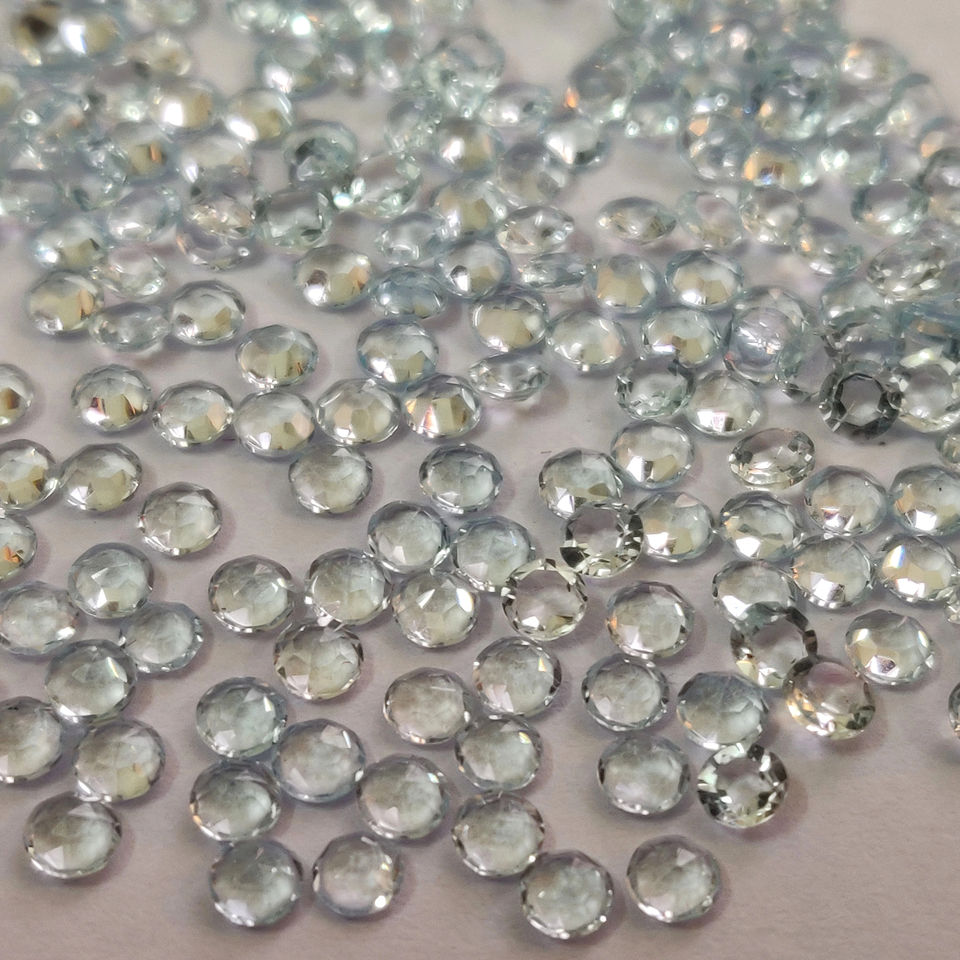 พลอยสกายบลูโทแพซทรงกลมเจียระไนแบบโรสคัท 6 มม. พลอยสกายบลูโทแพซทรงโรสคัทแบบแบนด้านหลัง คุณภาพเยี่ยม