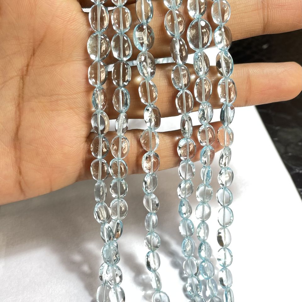 ลูกปัดรูปไข่เรียบบุษราคัมท้องฟ้าธรรมชาติลูกปัดอัญมณีหลวมสำหรับเครื่องประดับ