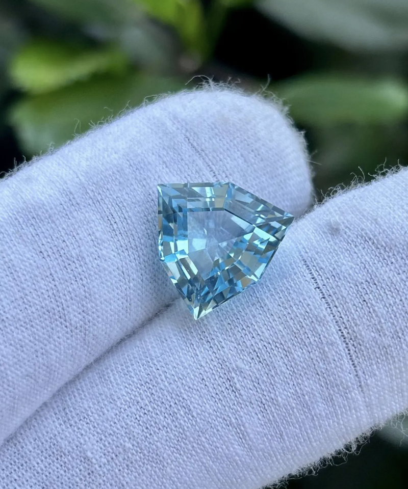 พลอยบุษราคัมสีฟ้าธรรมชาติล้านล้านสามเหลี่ยมทรงแฟนซีตัดเหลี่ยมเพชรพลอยหลวมขายส่งราคาทำเครื่องประดับ