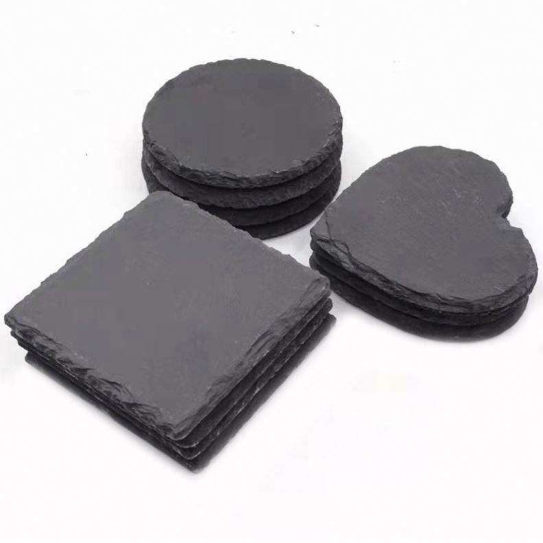 ชุดแผ่นรองแก้วหินชนวนธรรมชาติ - แผ่นรองแก้วทรงกลม สี่เหลี่ยม และรูปหัวใจ ทนทาน ลายพิมพ์ UV แกะสลัก ทนความร้อน ใช้ในบ้าน