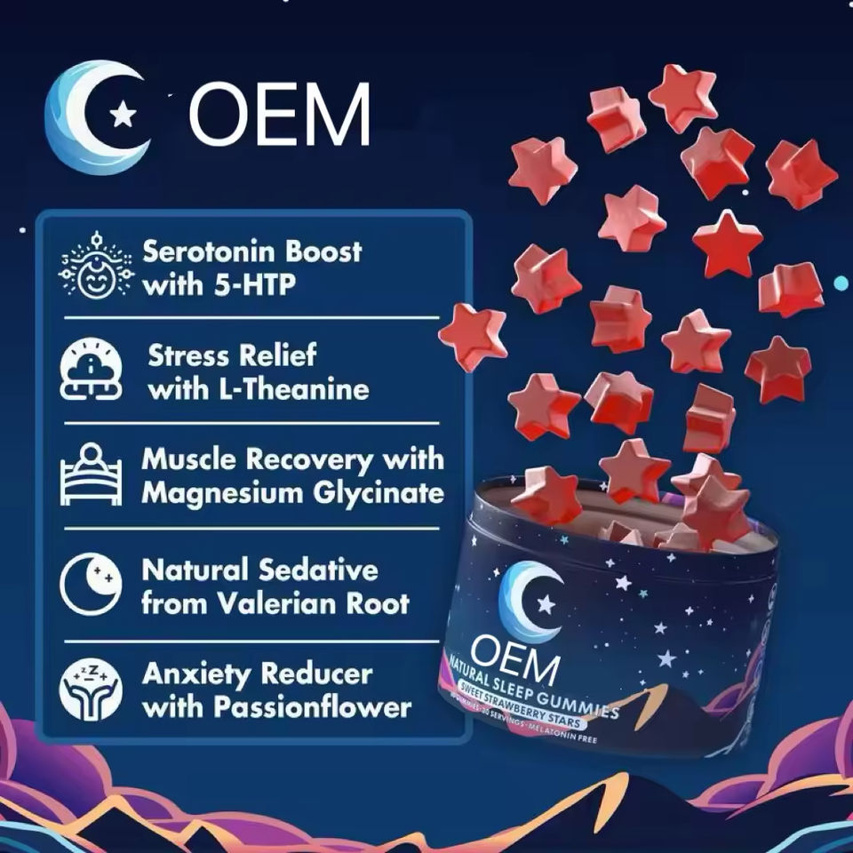 กัมมี่ช่วยการนอนหลับจากธรรมชาติ ผสม 5-HTP, แอล-ธีอะนีน, แมกนีเซียม และสารสกัดจากรากวาเลอเรียน ปราศจากเมลาโทนิน