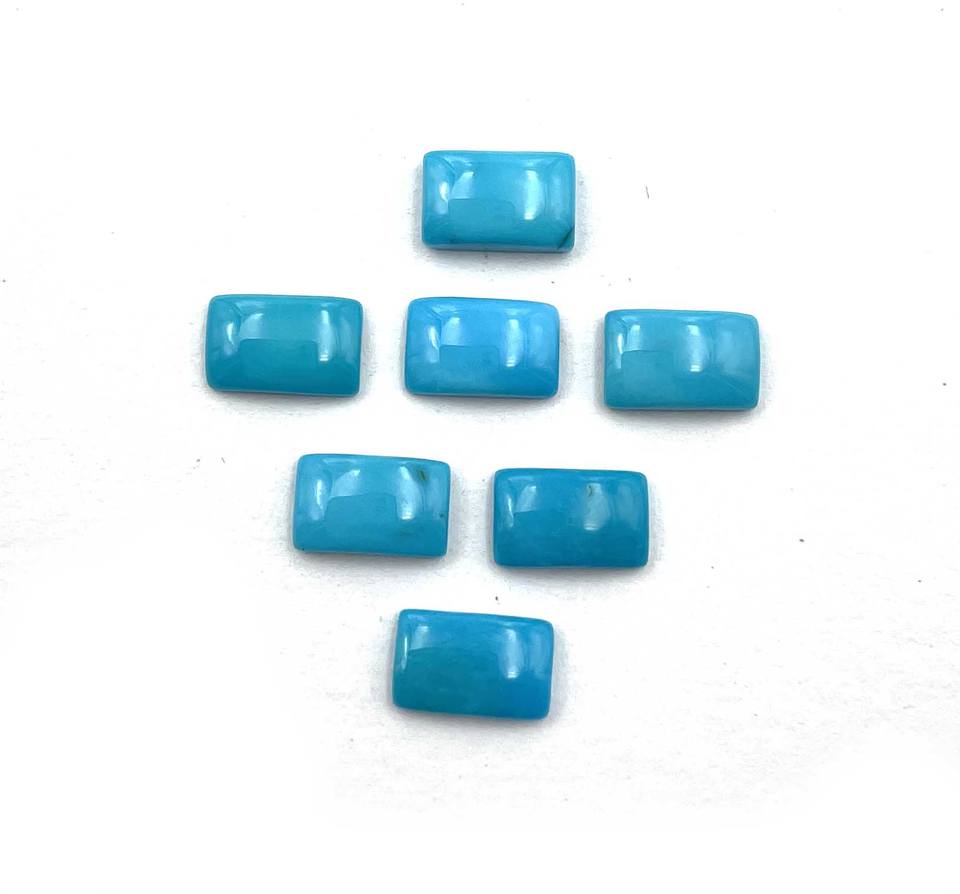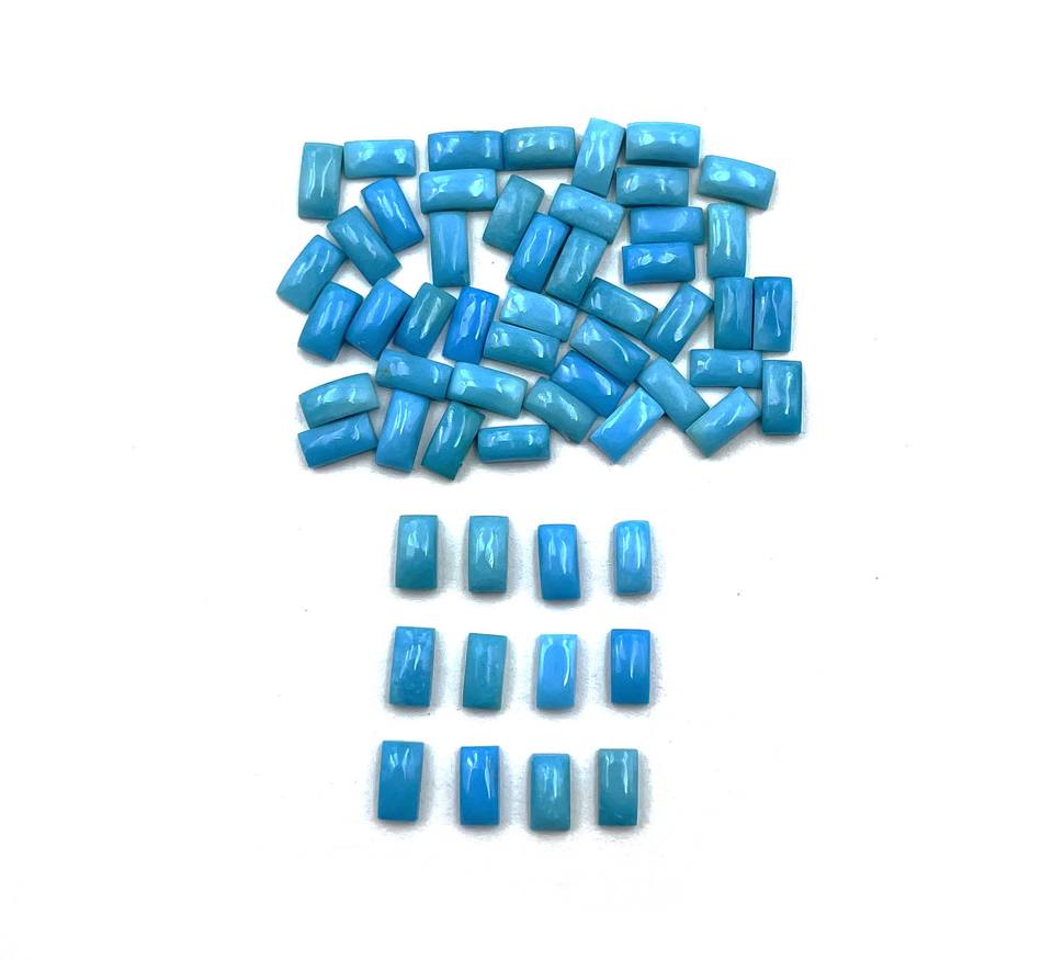 พลอยเทอร์ควอยซ์สีน้ำเงินธรรมชาติทรงบาแกตต์แบบคาโบชอง รับรองโดย IGI ขนาด 2.50*5-5*7 มม. สำหรับทำเครื่องประดับ