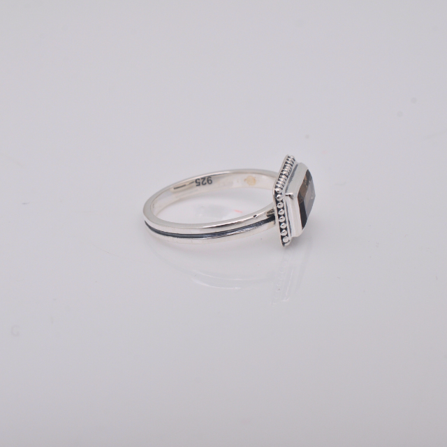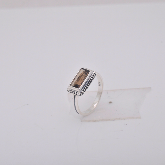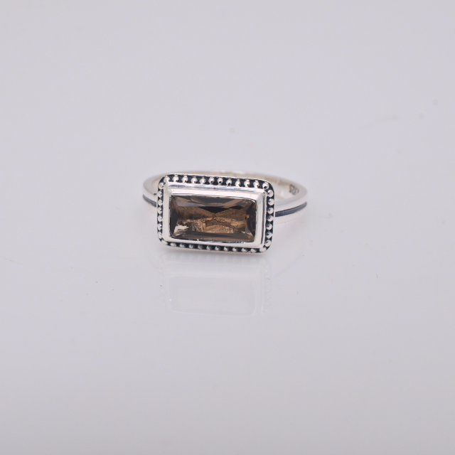 แหวนพลอยควอตซ์สโมคกี้ธรรมชาติทรงเบเซลเงินแท้ 925 สำหรับผู้หญิง ของขวัญสำหรับงานแต่งงานและงานปาร์ตี้
