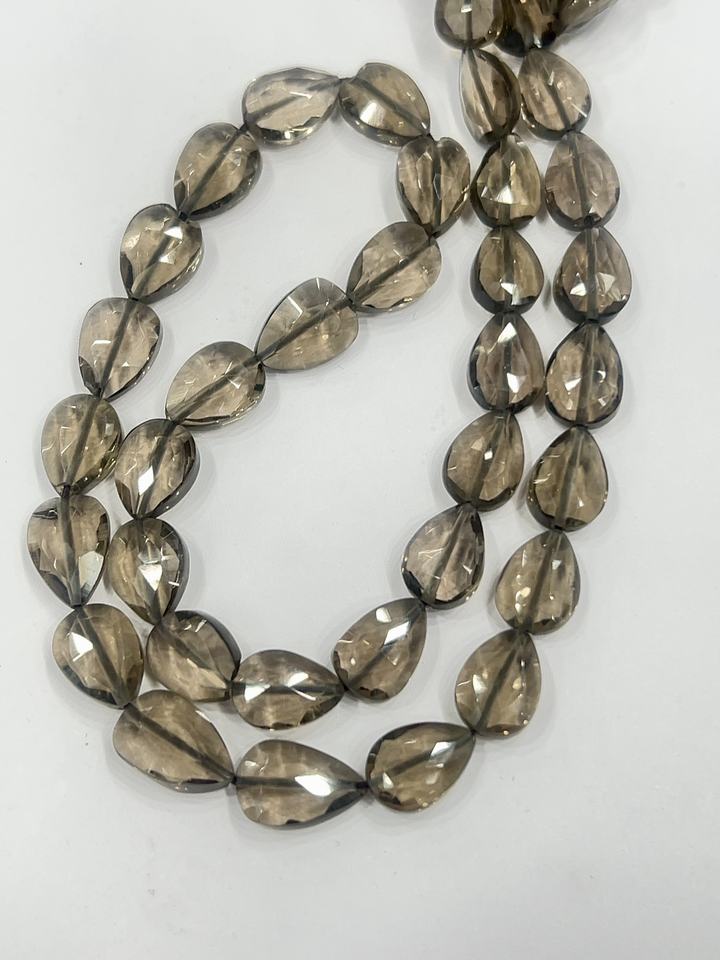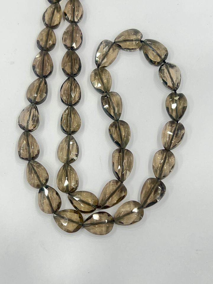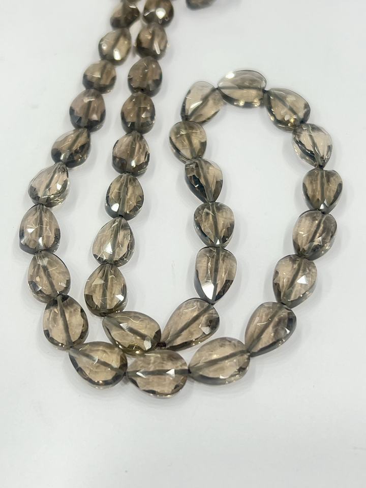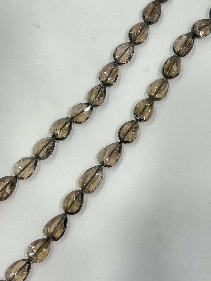 ลูกแพร์สโมคกี้ย์เจียระไนแบบควอทซ์ธรรมชาติขนาด16นิ้วลูกปัดเส้นใยขนาด6x8-9x13mm เกรด AAA