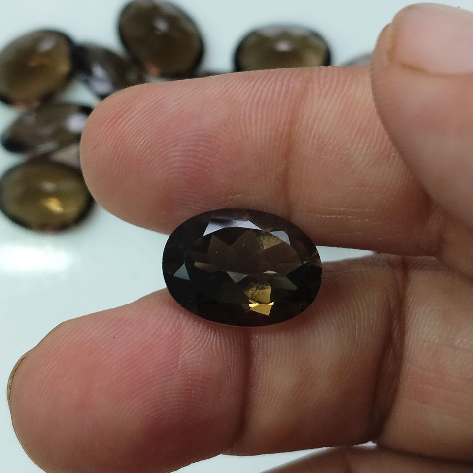 ควอตซ์สโมคกี้ธรรมชาติ 16x12 มม. รูปทรงวงรี คุณภาพดีที่สุด พลอยเม็ดเดี่ยวสำหรับทำเครื่องประดับ
