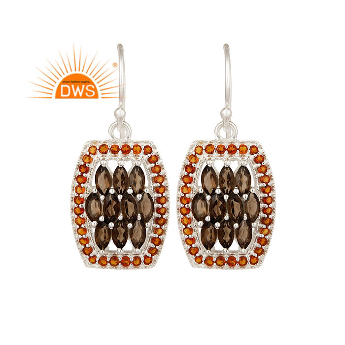 ต่างหูควอทซ์หินซิทรินธรรมชาติห้อยเงินจากตะขอดีไซน์สวยสำหรับผู้ค้าส่ง