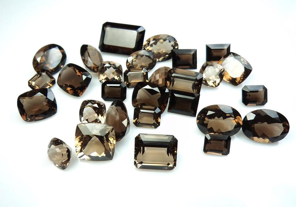 อัญมณีแท้ทรงเว้าตัดเป็นทรงหกเหลี่ยมรูปทรงสโมควอทซ์ธรรมชาติ