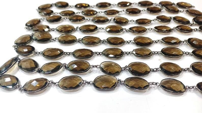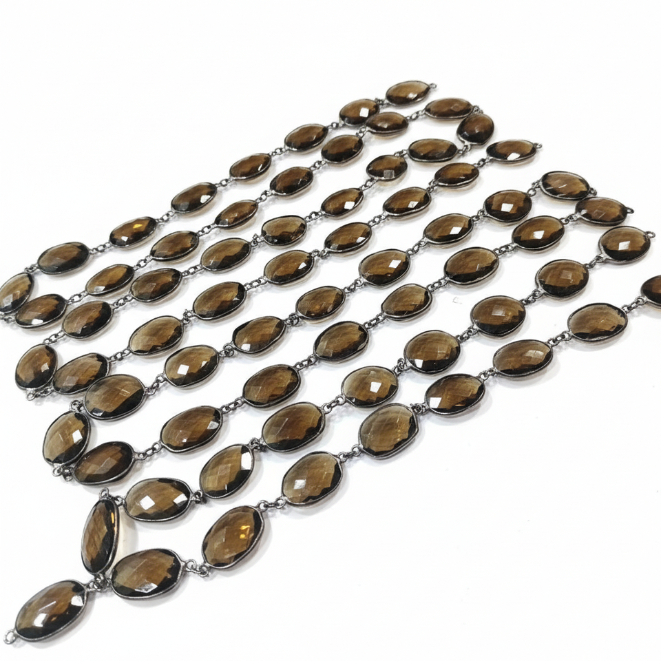โซ่เชื่อมต่อแบบเบซัลทรงบริโอเล็ต ทำจากทองเหลืองประดับควอตซ์สโมคกี้ธรรมชาติ รูปทรงอิสระ ขนาด 12-15 มม. คุณภาพสูง ขายเป็นเมตร สำหรับทำเครื่องประดับ