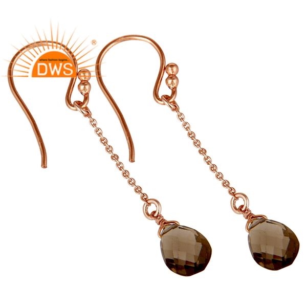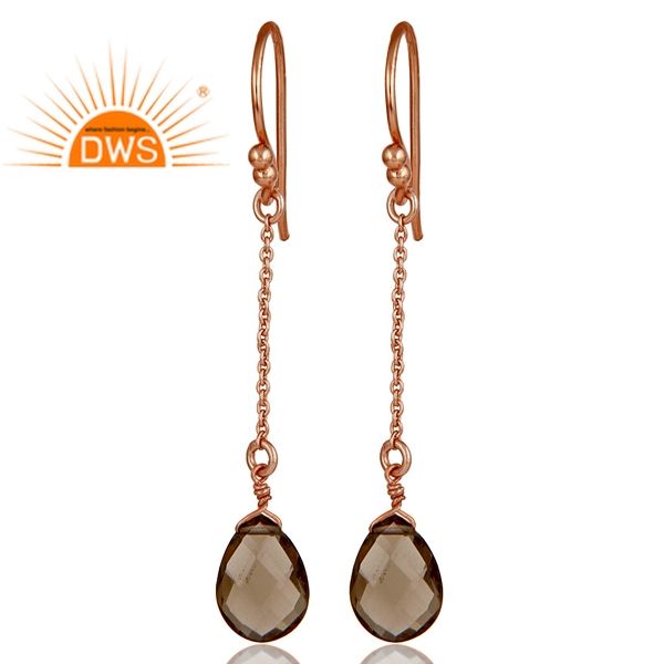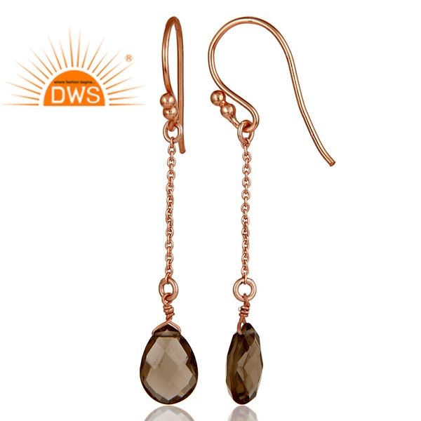 ธรรมชาติ Smoky ควอตซ์พลอยต่างหูผู้ผลิตเครื่องประดับอินเดียกุหลาบทองเงินสเตอร์ลิงห่วงโซ่ลดลงต่างหูเครื่องประดับ