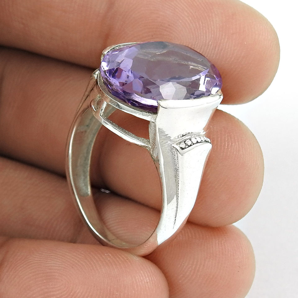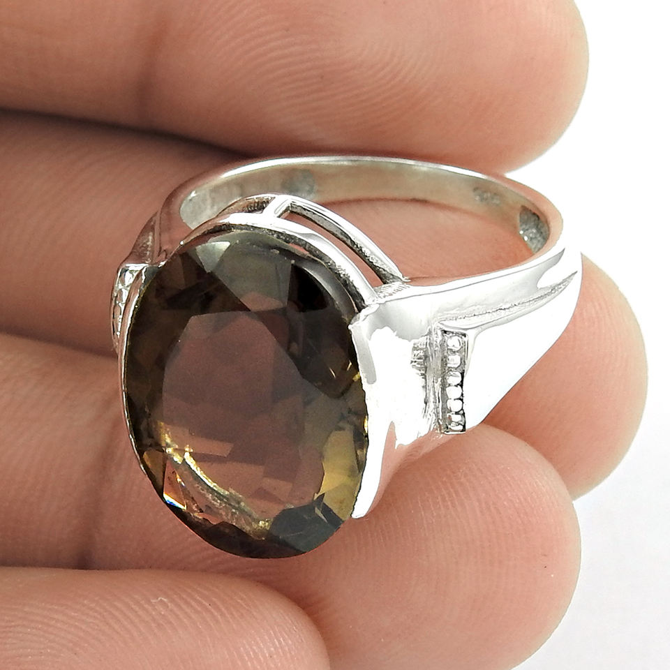 แหวนพลอยควอตซ์สโมคกี้ธรรมชาติทรงรีทำจากเงินแท้925ผู้หญิงเครื่องประดับโบฮีเมียนทำด้วยมือ