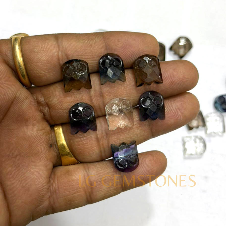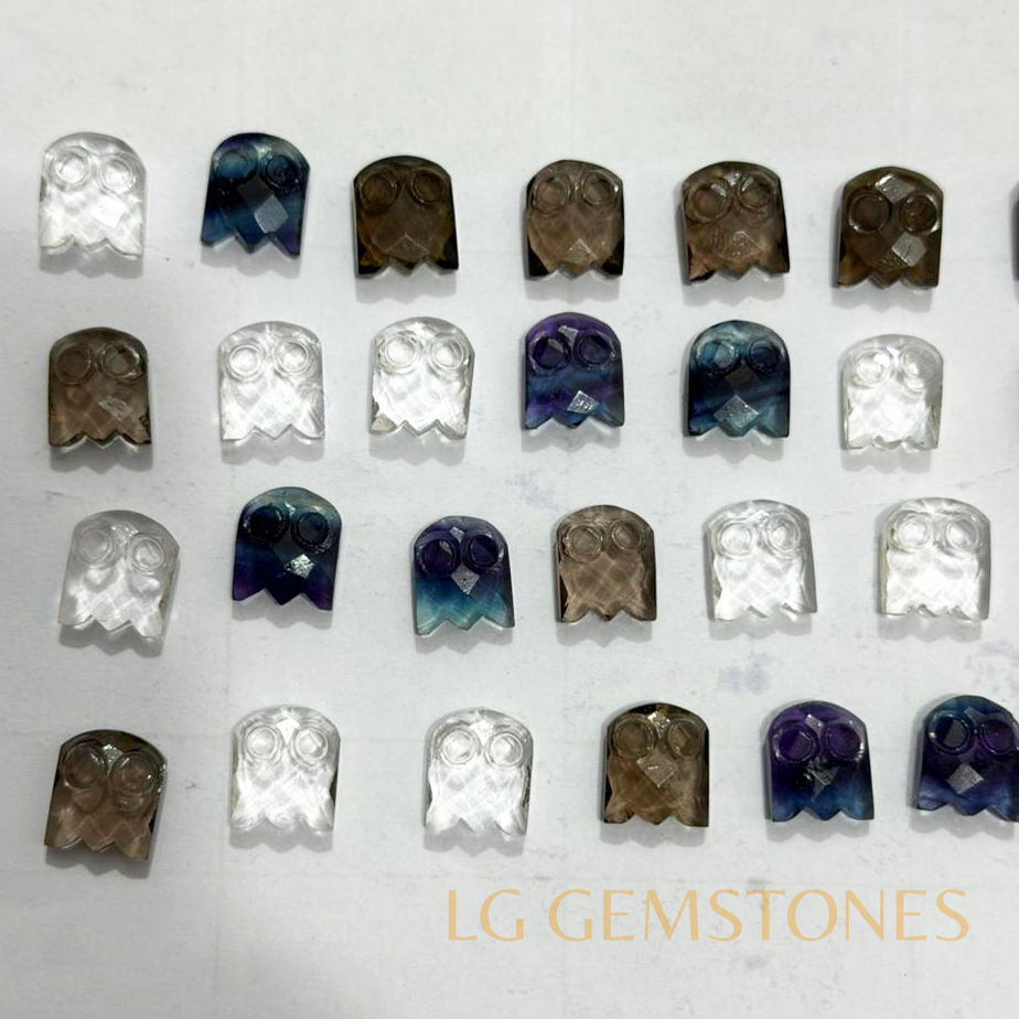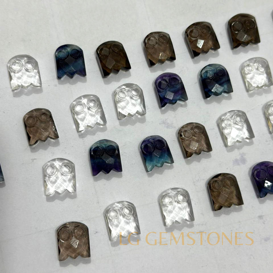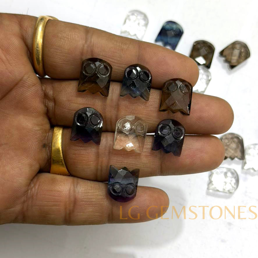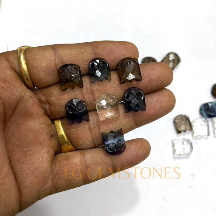 ควอตซ์สโมคกี้ธรรมชาติรูปผีสำหรับฮาโลวีน แกะสลักด้วยมือ หินคริสตัลรูปผีสำหรับทำเครื่องประดับ