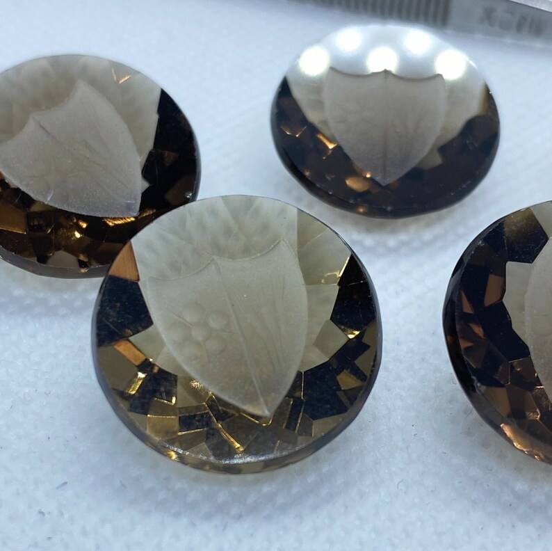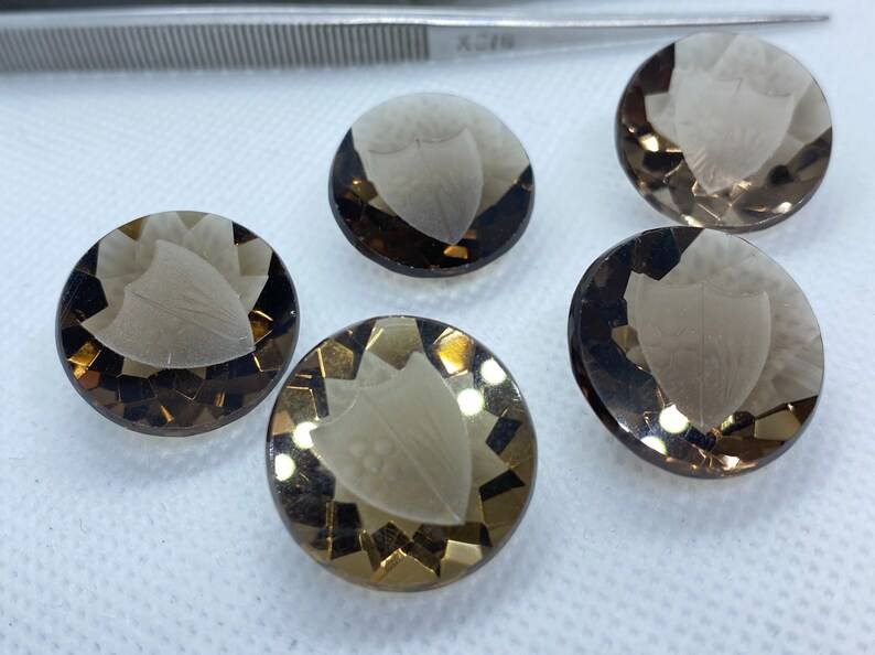 ควอตซ์สโมคกี้ธรรมชาติทรงกลมแบน แกะสลักลาย ขนาด 20 มม. ปรับสีได้ เหมาะสำหรับทำเครื่องประดับ จำนวนมาก