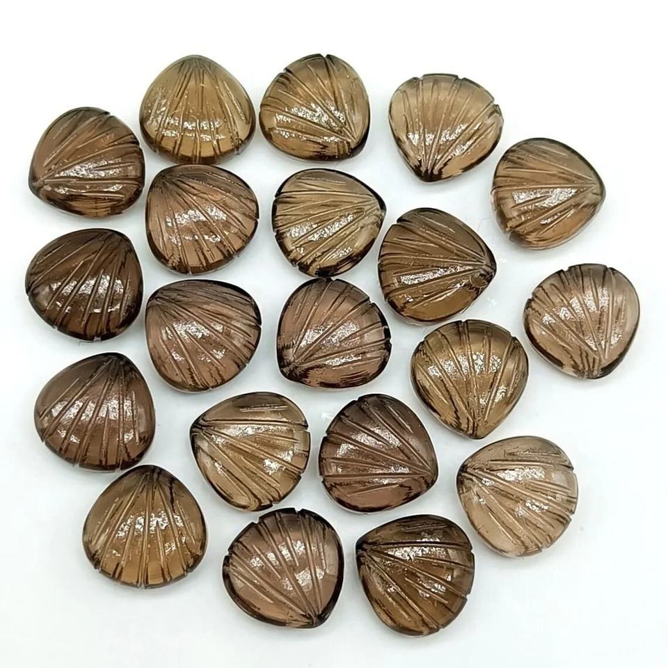 ชื่อผลิตภัณฑ์:อัญมณีแกะสลักรูปร่างเปลือกหอยควอทซ์สโมคกี้ธรรมชาติ