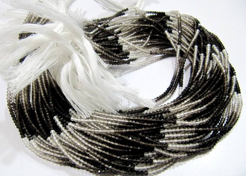ลูกปัดสีเทาควอทซ์สโมคกี้ธรรมชาติขนาด2มม. สีน้ำตาลโคแลร์ยาว13นิ้ว
