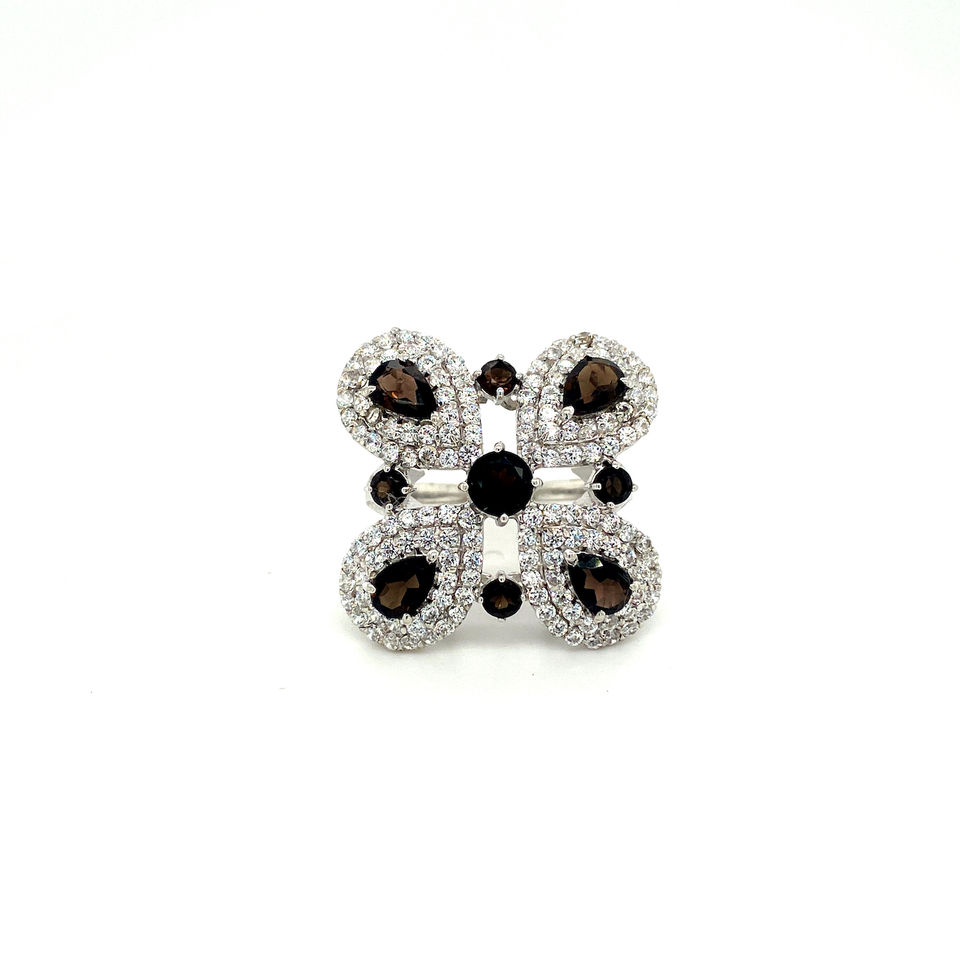 Smoky Quartz,Cubic ZirconMain Stone
