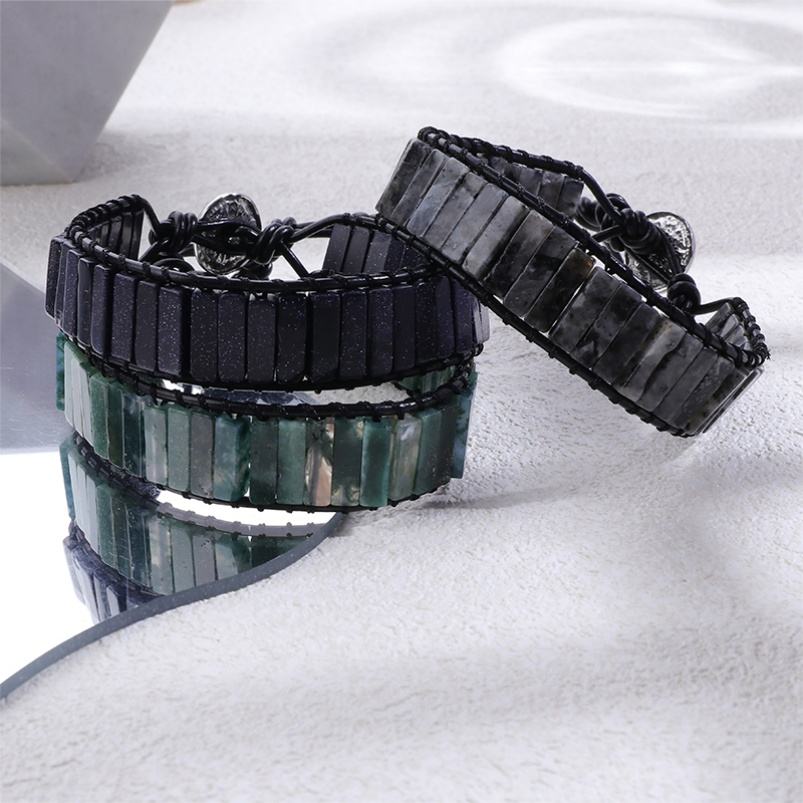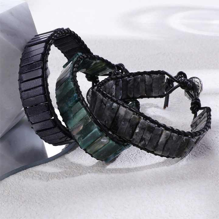 สร้อยข้อมือสไตล์โบโฮทำจากหินหิมะธรรมชาติทำมือปรับได้สร้อยข้อมือลูกปัดสวยงามสำหรับเครื่องประดับแฟชั่นของผู้ชาย