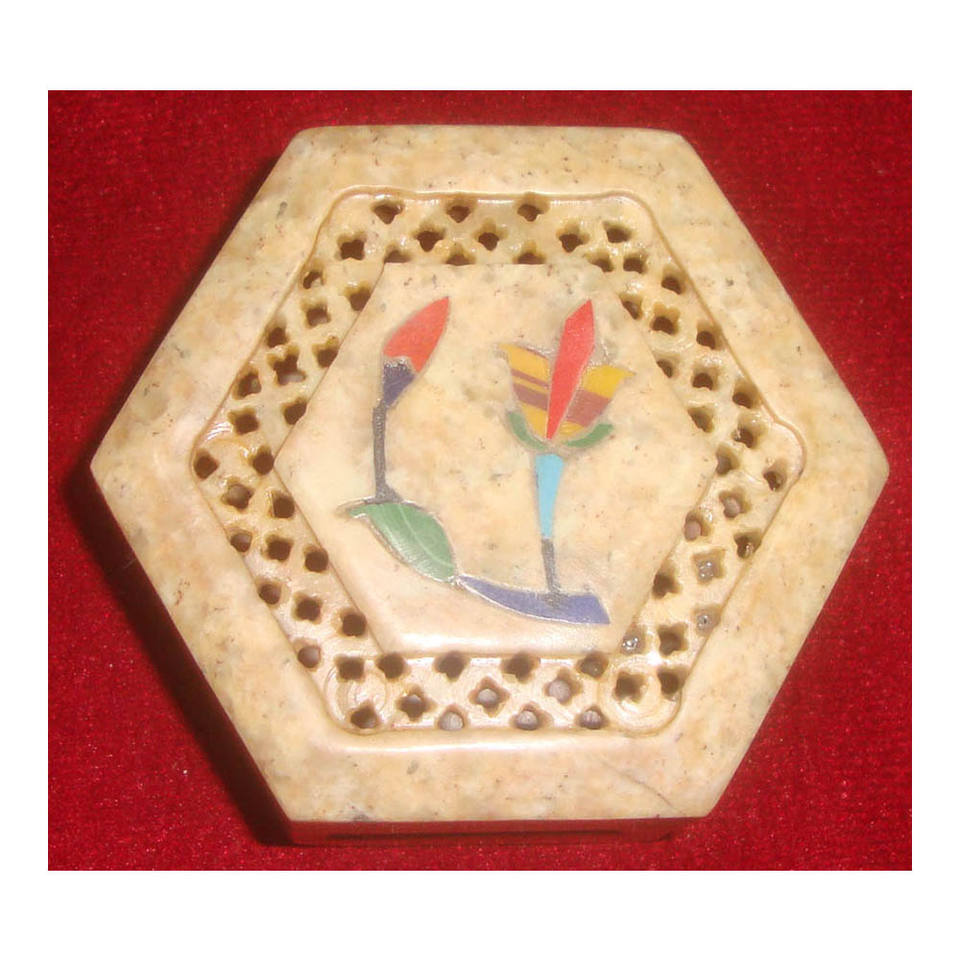 กล่องเครื่องประดับหินสบู่ธรรมชาติ แกะสลักด้วยมือลายจาลี