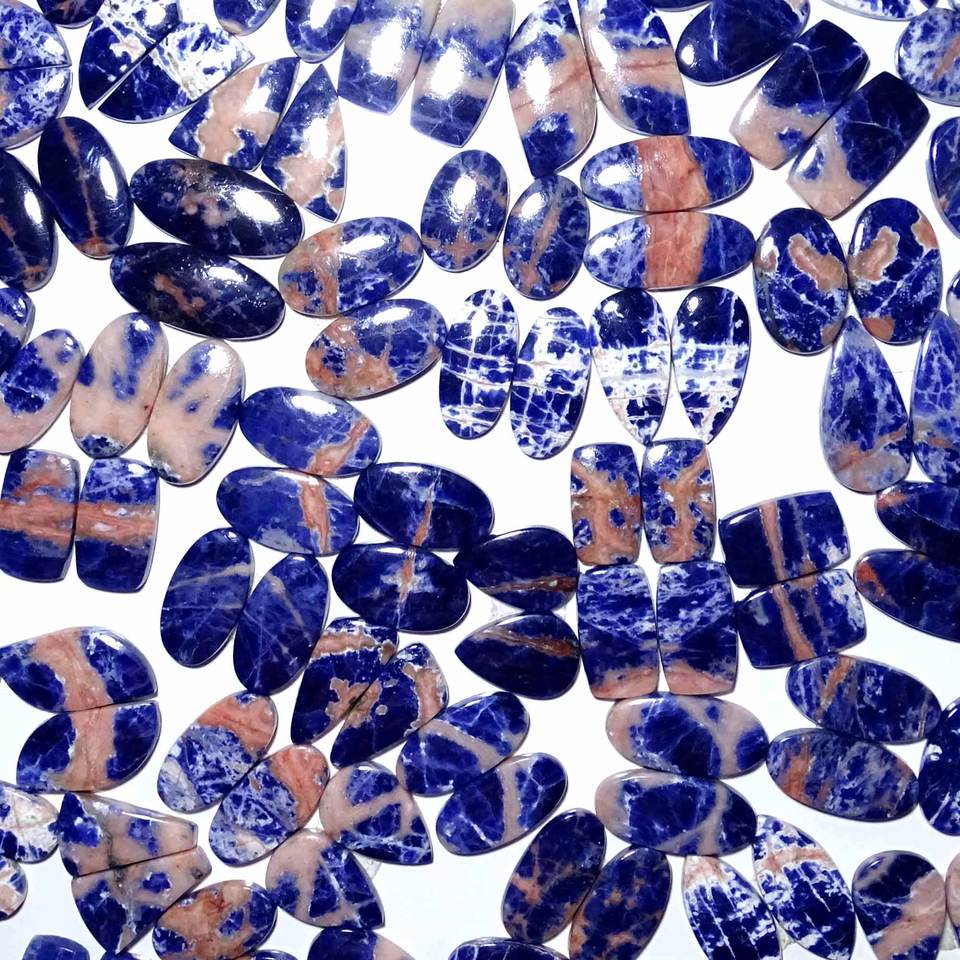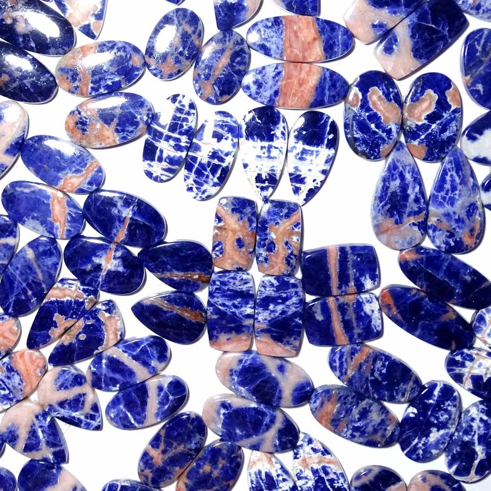 หินโซดาลิทธรรมชาติแร่เจียระไนทรงหลวมแร่โซดาไลต์ธรรมชาติบำบัดสำหรับทำเครื่องประดับ
