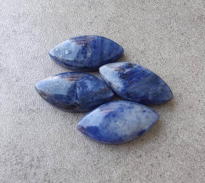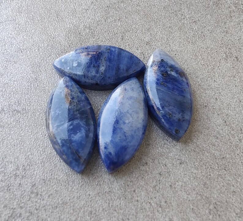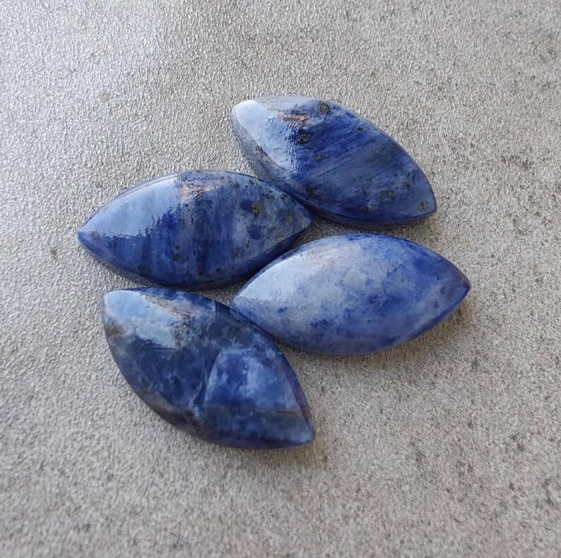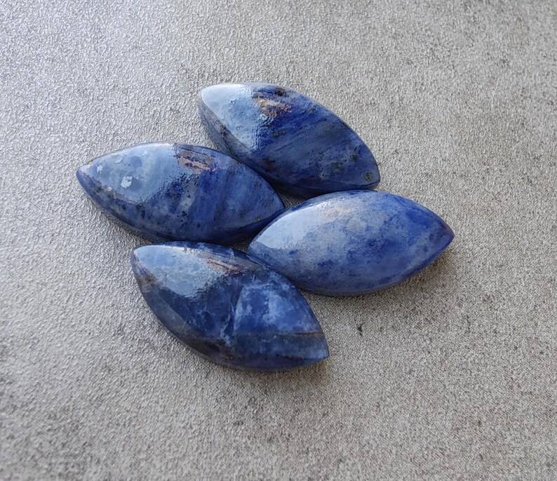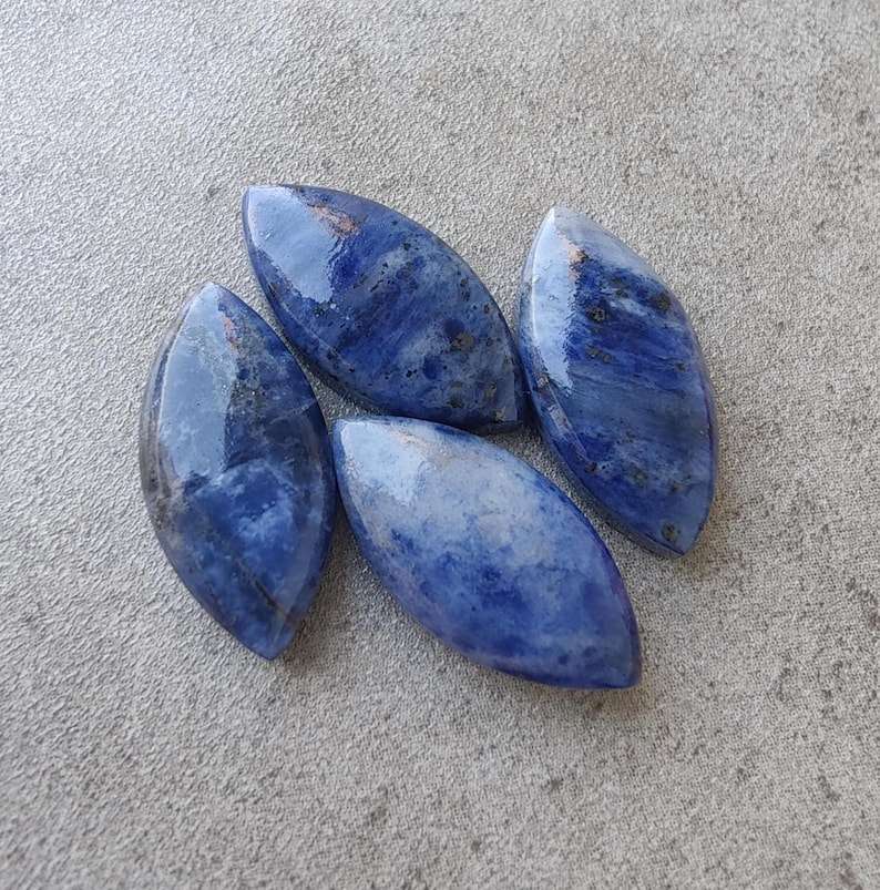 โซดาไลต์ธรรมชาติทรงมาร์คีส์ คาโบชอง หลังแบน ขนาดปรับเทียบแล้ว อัญมณีหลวมสำหรับทำเครื่องประดับ