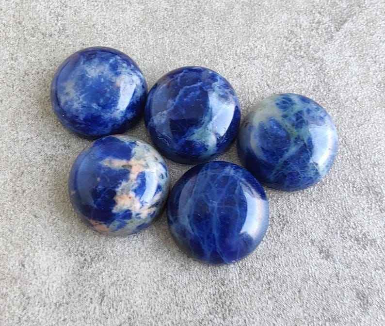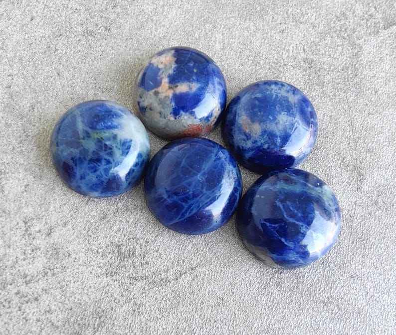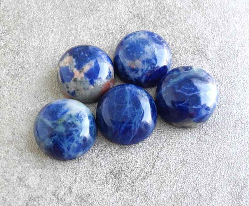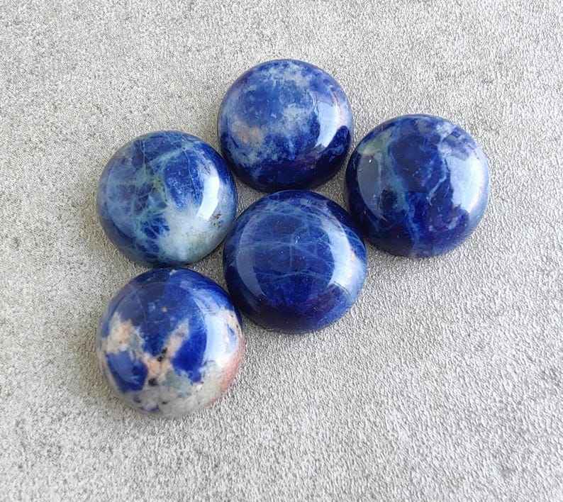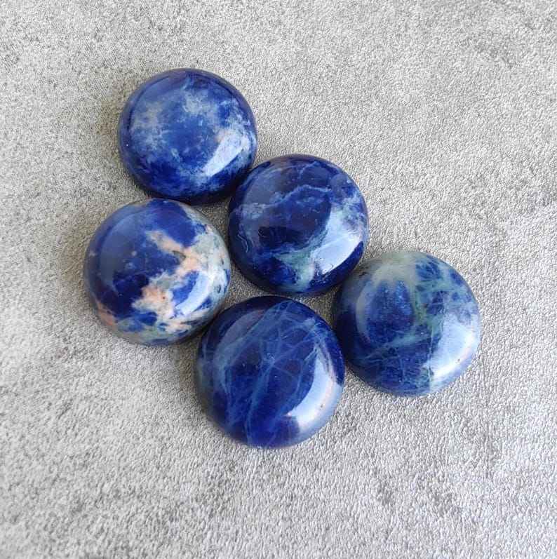 โซดาไลต์ธรรมชาติทรงกลมแบบคาโบชอง หลังแบน ขนาดปรับเทียบแล้ว อัญมณีหลวมสำหรับทำเครื่องประดับ