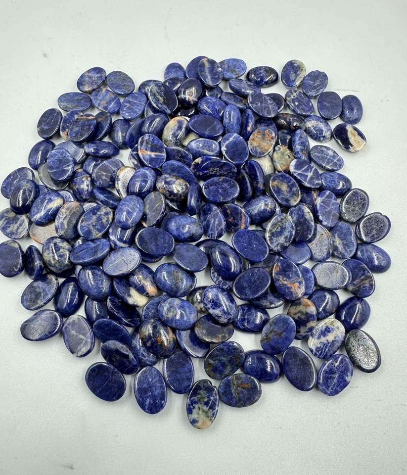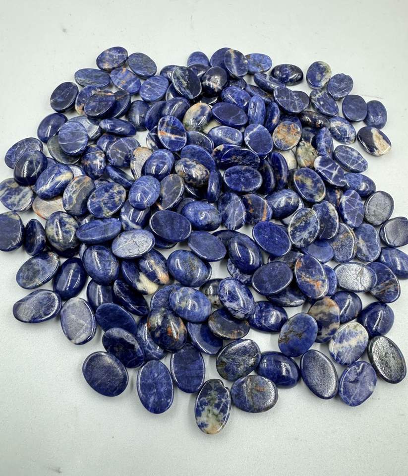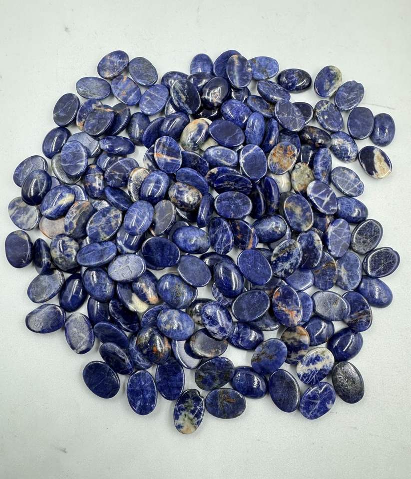 หินโซดาไลต์ขัด10x14mm-15x20mm รูปไข่สีฟ้าเรียบอัญมณีหลวมสำหรับทำเครื่องประดับอัญมณีขายส่ง