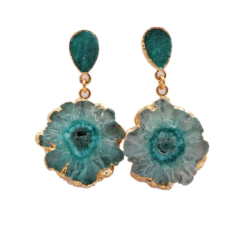 Natural Solar ควอตซ์ & น้ำตาล Druzy หินคู่ต่างหูอัญมณี Handmade โรงงานขายส่งแฟชั่นผู้หญิงเครื่องประดับต่างหู