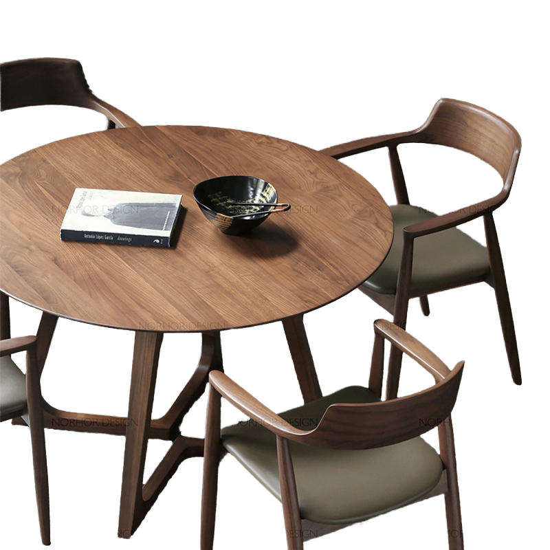 โต๊ะอาหารไม้เนื้อแข็งทรงกลมสไตล์มินิมอลสำหรับอพาร์ทเมนต์ 4 ที่นั่ง ขนาดเล็ก สีวอลนัท ประกอบง่าย แข็งแรง เหมาะสำหรับบ้าน โรงแรม ร้านกาแฟ