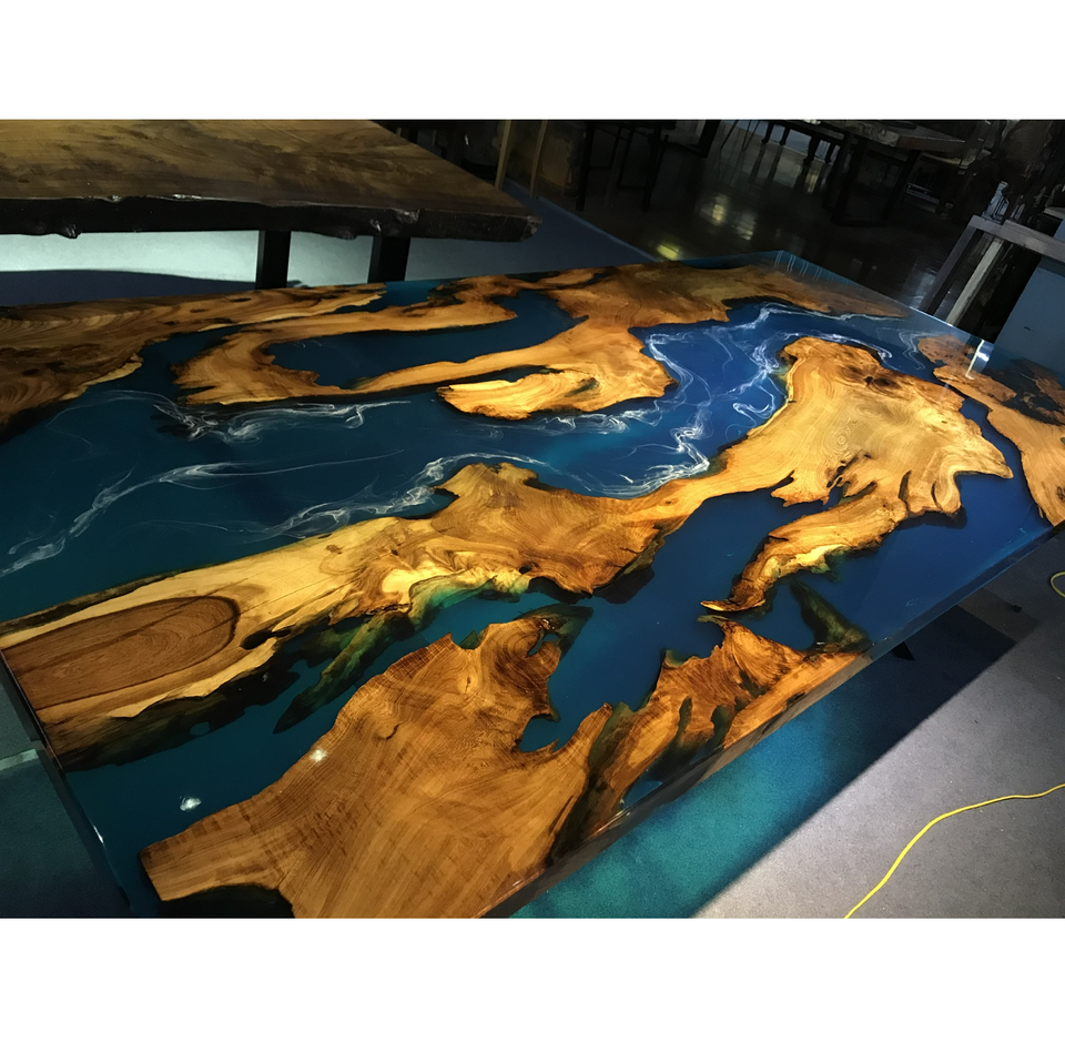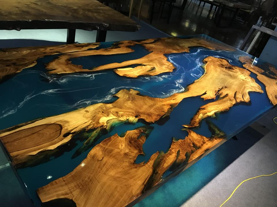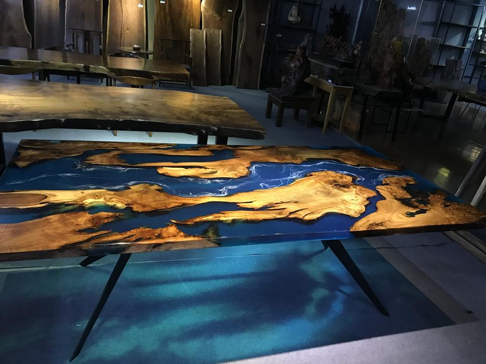 โต๊ะไม้เนื้อแข็งธรรมชาติ งานฝีมือเวียดนาม ดีไซน์โดดเด่น ผลิตภัณฑ์ขายดี หน้าโต๊ะไม้เคลือบอีพ็อกซี่ ขอบไม้ธรรมชาติ