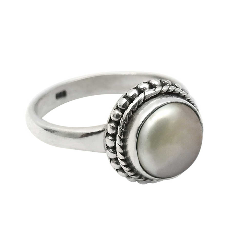 แหวนชนเผ่าแบบธรรมชาติสำหรับเด็กผู้หญิง ประดับด้วยไข่มุกน้ำจืดทรงกลมเจียระไนสวยงาม ประทับตราด้วยเงินแท้ 925