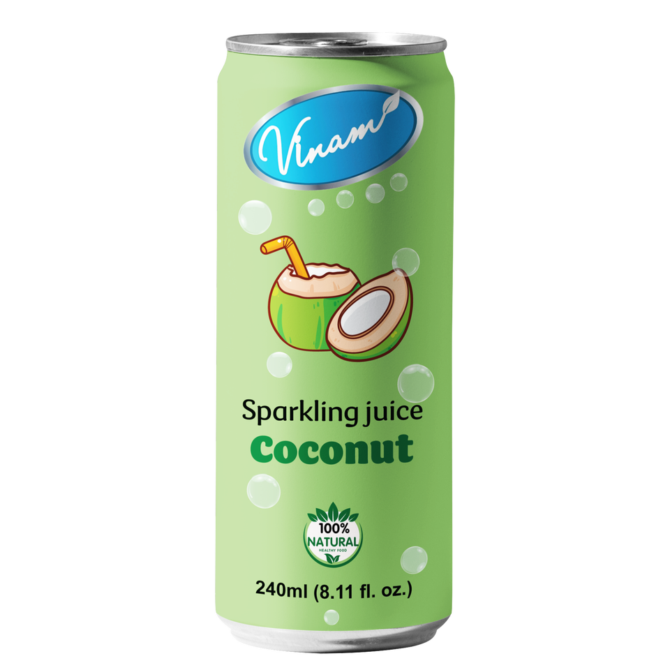 เครื่องดื่มน้ำมะพร้าวประกายธรรมชาติ250มล. 330มล. ผลิตในราคาโรงงานเครื่องดื่มมะพร้าวที่ดีที่สุดจากเวียดนาม
