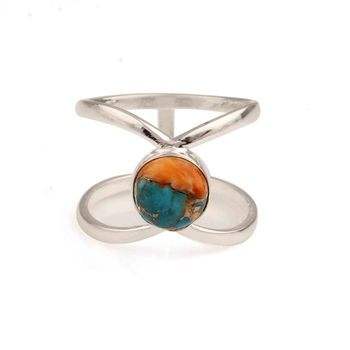 ชื่อสินค้า:แหวนเงินแท้ลายสองวงประดับมุกหอยมุกธรรมชาติและเทอร์ควอยซ์สีทองแดง