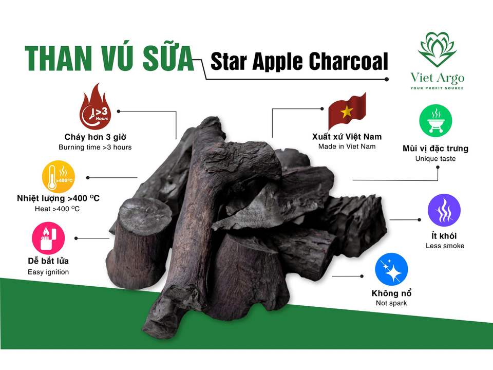 Natural Star Apple Charcoal Grill & Heating Coal Black Charcoal BBQ Briquette Made in Vietnam Shell Pattern for Export Buyers