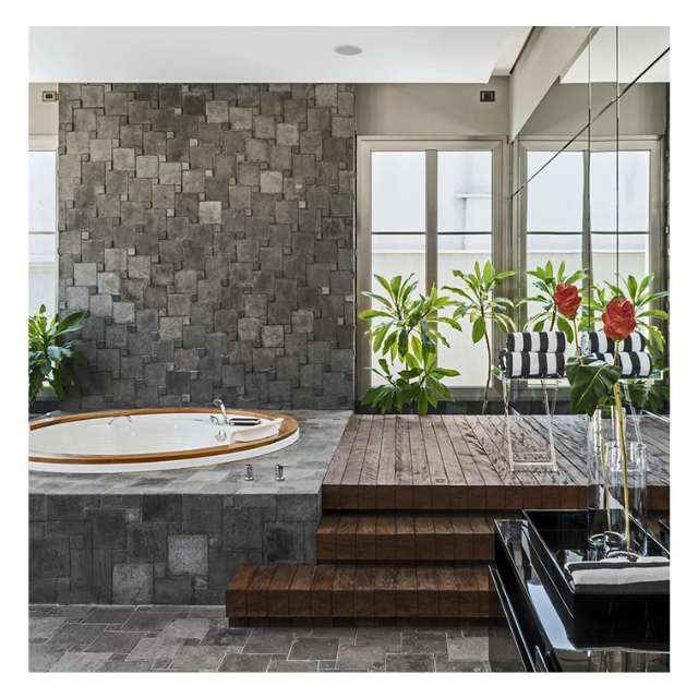 หินธรรมชาติหินลาวาสีดำขนาด10x10ซม. สำหรับผนังหินลาวาอาคาร