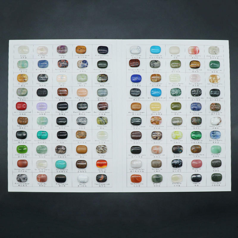 บัตรสีจริงหินธรรมชาติ100ชิ้นพร้อมคริสตัลธรรมชาติและหินสังเคราะห์ที่มีชื่ออ้างอิง