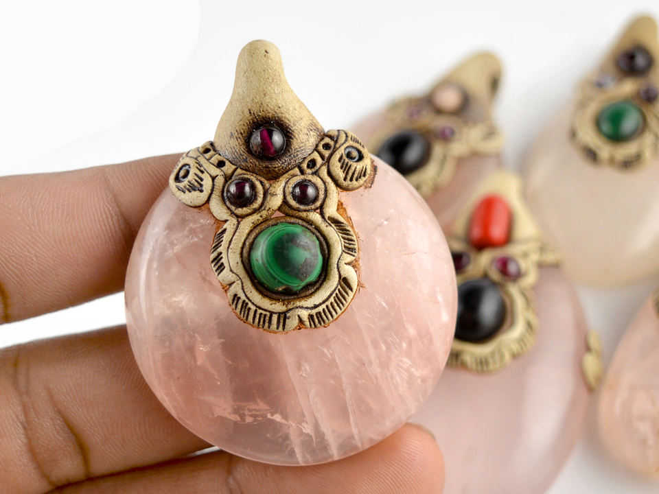 จี้หินโรสควอตซ์ธรรมชาติ โพลีเมอร์เคลย์ น่ารัก เหมาะสำหรับงานแต่งงาน สร้อยคอแบบ unisex ขายส่ง