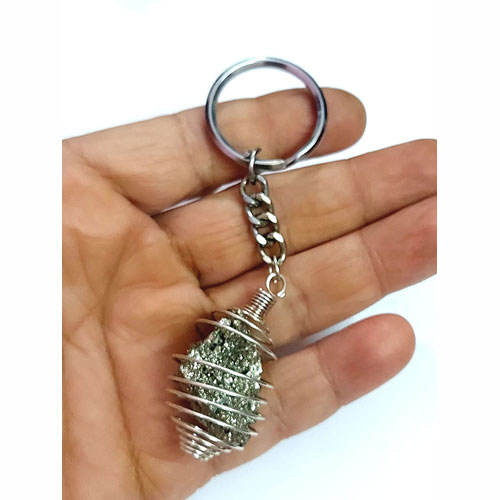 พวงกุญแจหินไพไรต์แบบห่อจากธรรมชาติ,พวกกุญแจคริสตัลอัญมณีสีทองสำหรับผู้ค้าส่ง