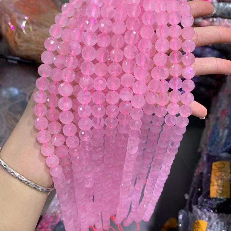 ลูกปัดหินธรรมชาติแบบหลวมลูกปัดคริสตัลโรสควอตซ์ลูกปัดแบบเหลี่ยมเพชรพลอย