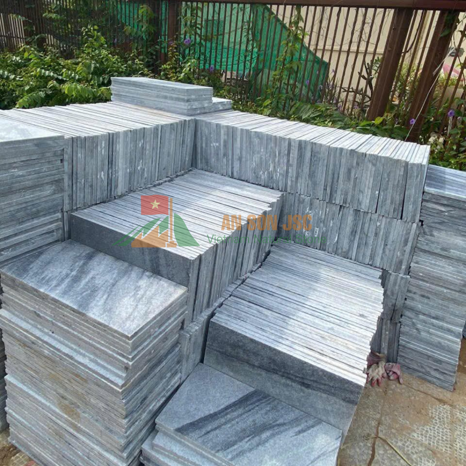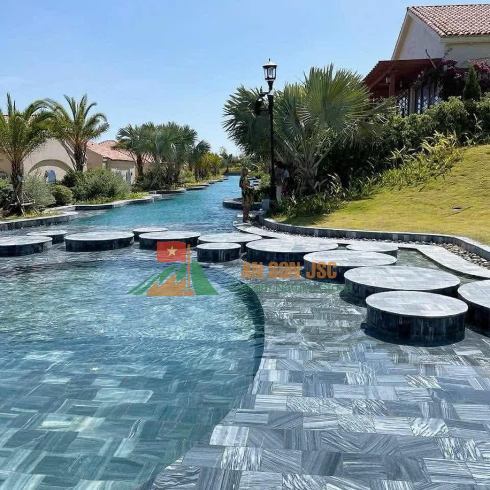 กระเบื้องปูขอบสระว่ายน้ำหินธรรมชาติ แผ่นปูพื้นหินอ่อนสีน้ำเงิน สำหรับวิลล่า โรงแรม สนามหลังบ้าน พื้นสระว่ายน้ำ ป้องกันการลื่น