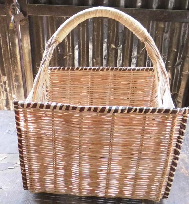 กระเป๋าโท้ททำจากไม้ไผ่ธรรมชาติพร้อมที่จับไม้วัสดุ PC มีปุ่มปิดทรงกลมและสายรัดคู่ลายถัง